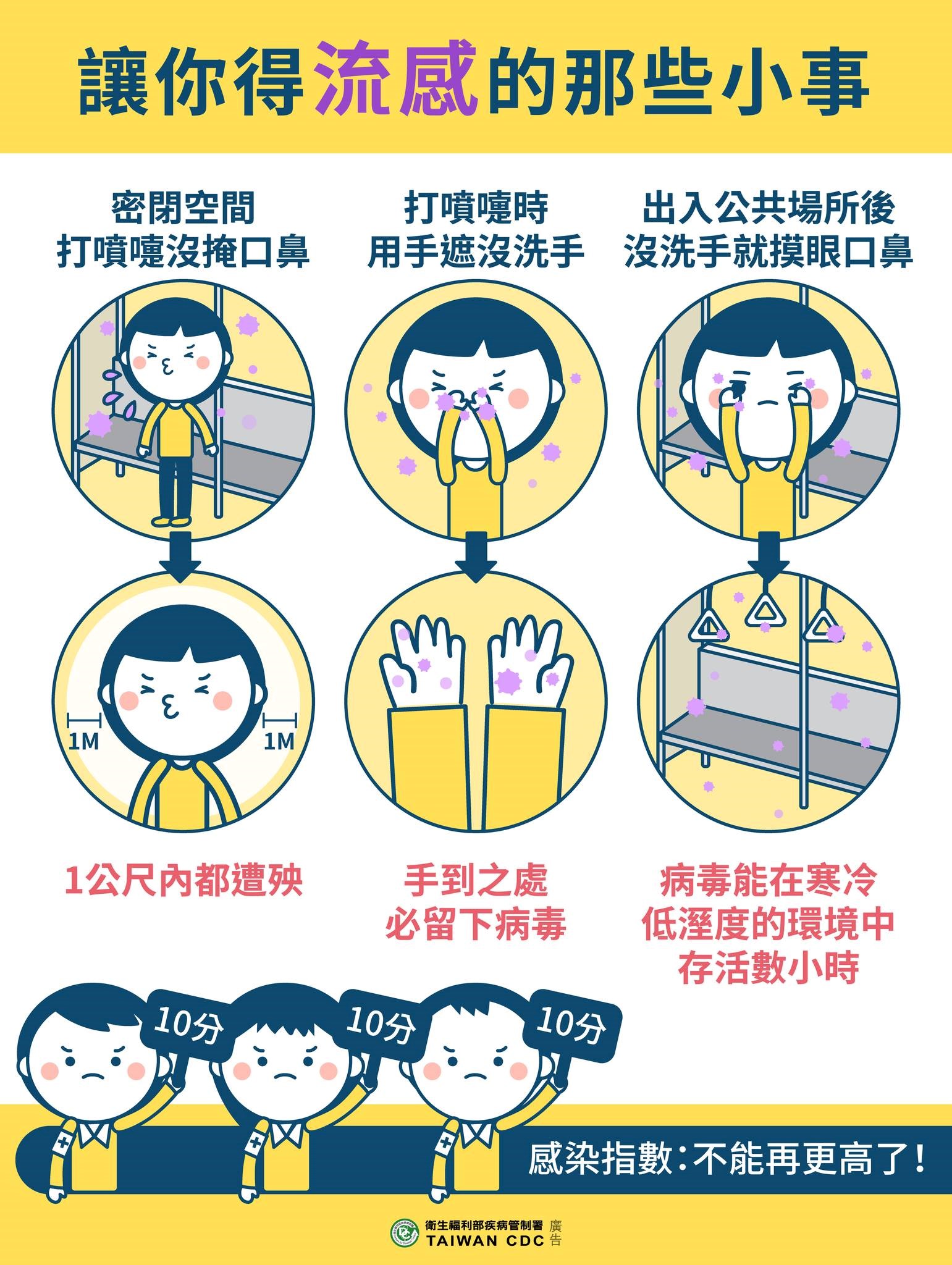 - 擴大社交距離:流感流行季期間,減少出入公共場所或人潮擁擠地方。