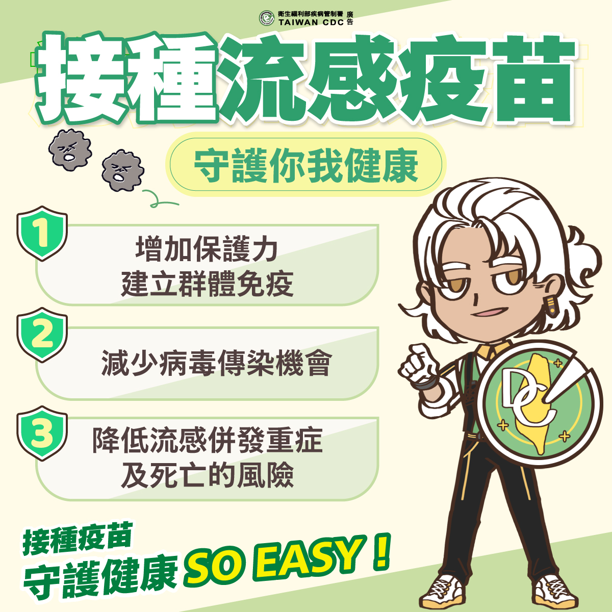 疾管署呼籲,流感疫苗施打後需約2週後才會產生足夠的抗體,具保護效果,故民眾應儘早於11月疫情來臨前洽詢公費或自費接種服務,提升自我保護力,預防感染。另完成疫苗接種後,雖可有效降低感染流感病毒的機率,但仍可能罹患其他病毒所引起的感冒,因此民眾仍應注意個人衛生保健及各種預防措施。