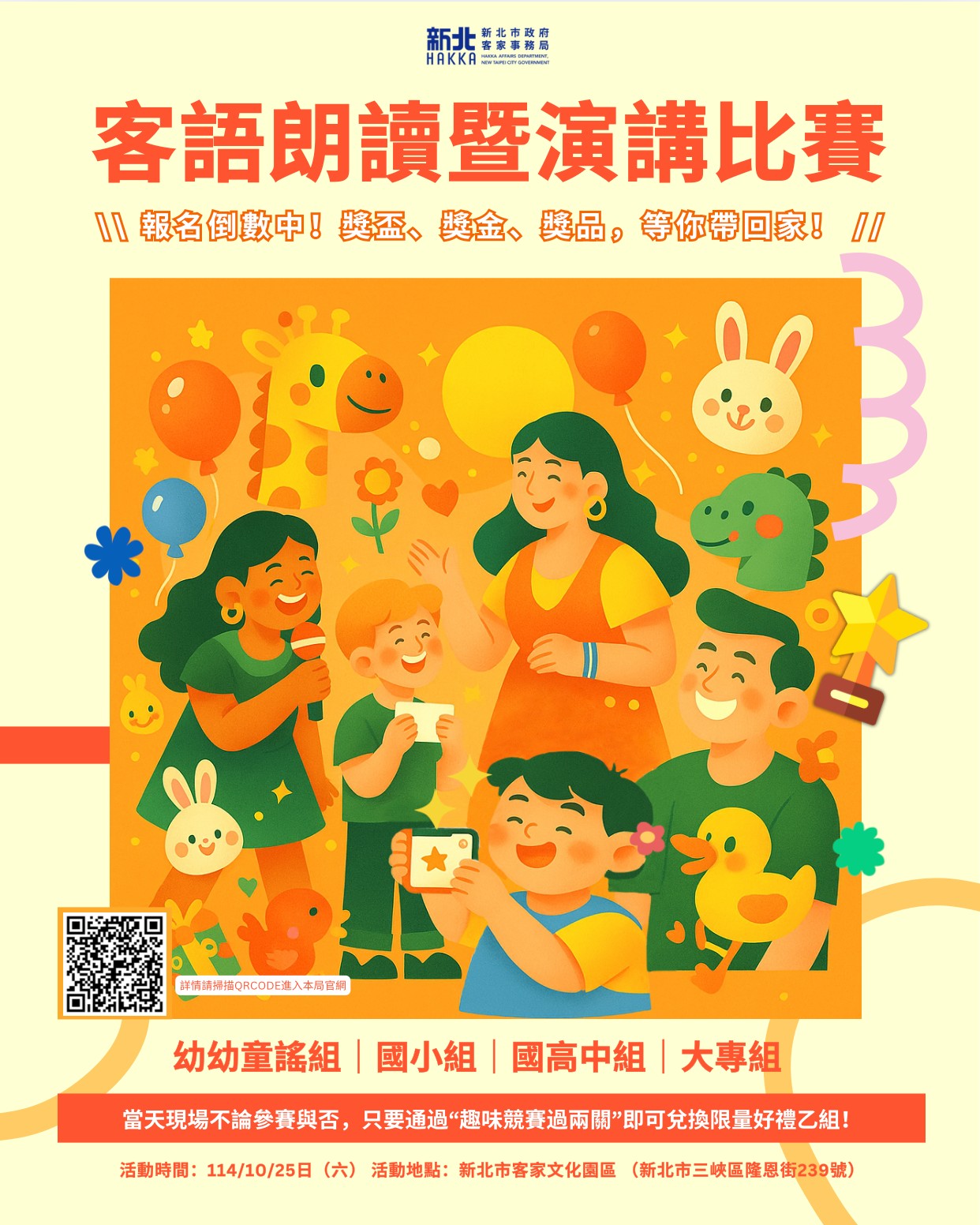 | 公告主旨 | 函轉新北市政府客家事務局「114年客語母語朗讀暨演講比賽」報名簡章1份 |