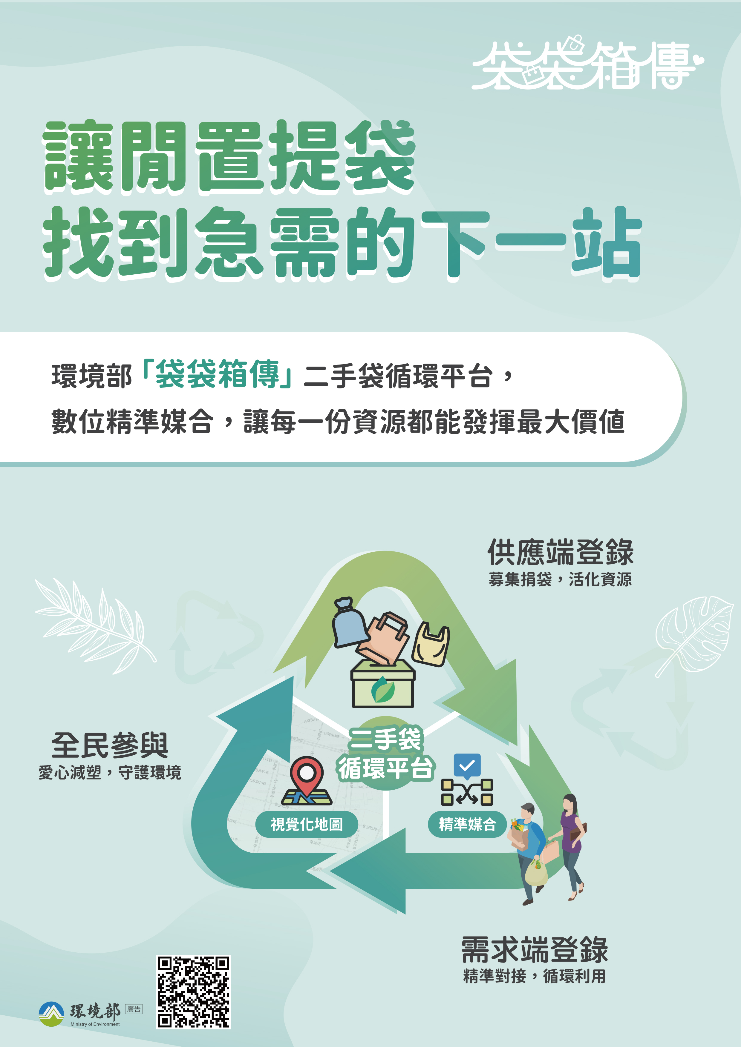 | 公告主旨 | 協助宣傳環境部 「袋袋箱傳」二手袋循環平台及踴躍響應,推廣二手袋循 環使用與減塑文化。 |