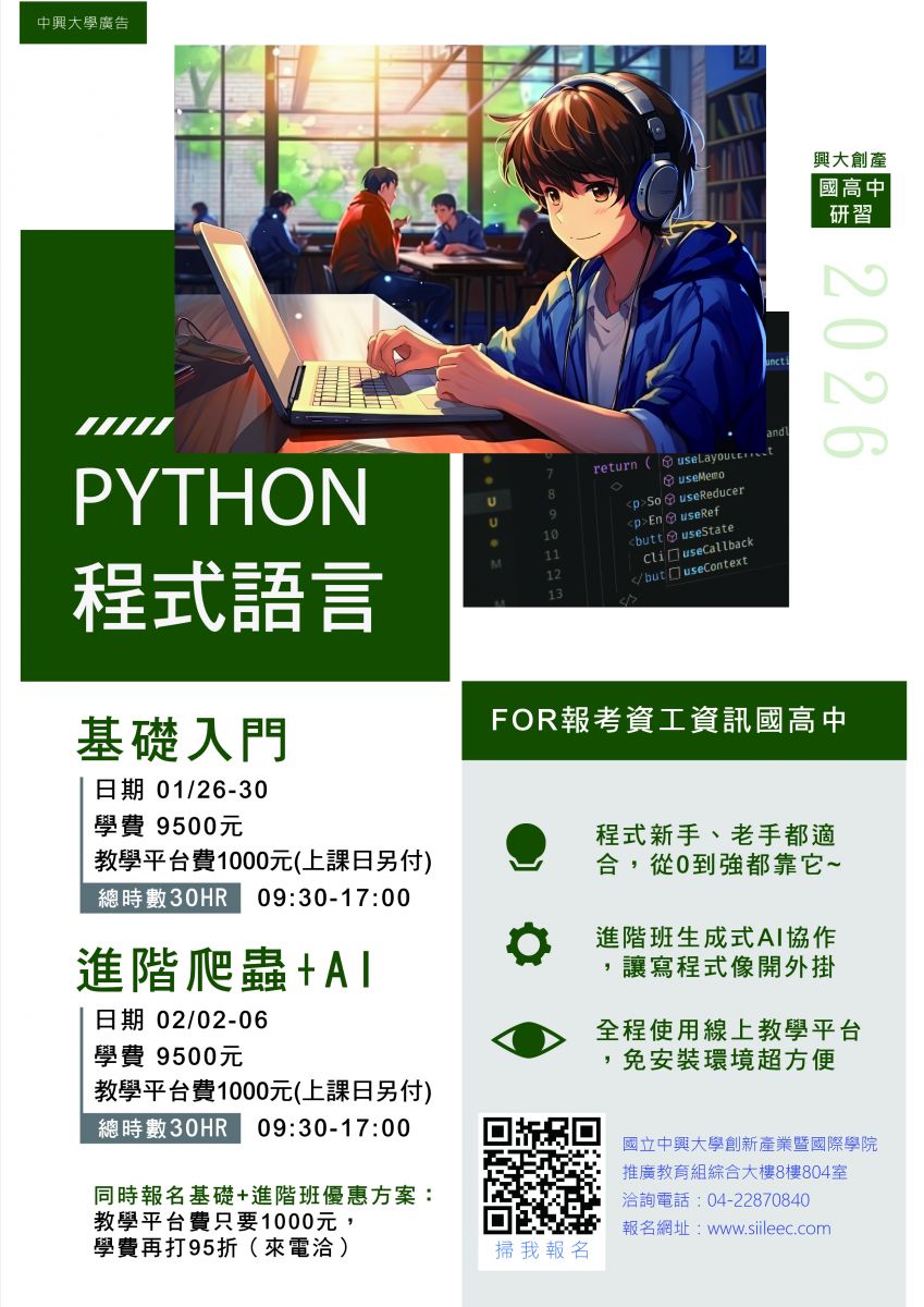 | 公告主旨 | 國立中興大學2026年寒假Python程式設計系列 |
