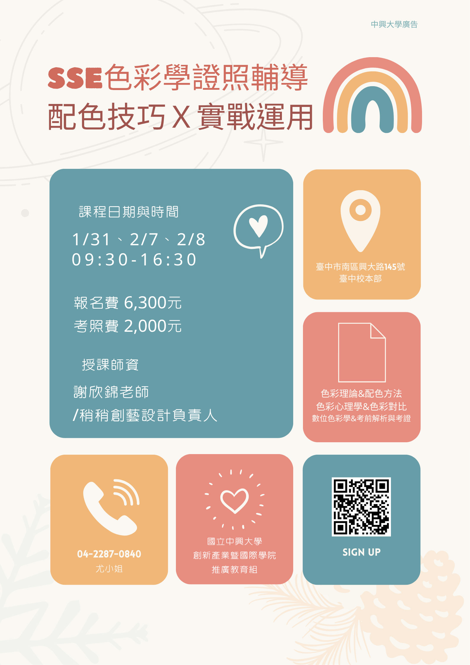 | 公告內容 | 國立中興大學將於2025年1月26日起舉辦旨揭課程。課程特色如下: 詳參附件資料。