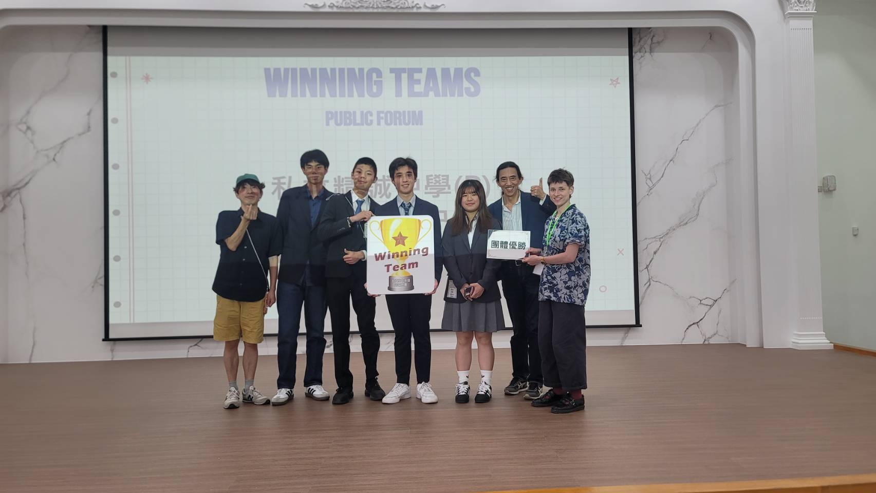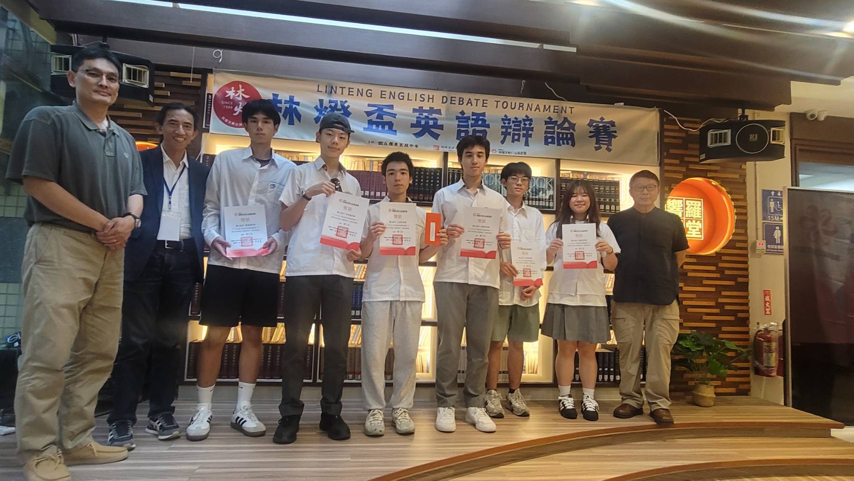 在英語表達與思辨能力方面,本校英文專題辯論組學生於115年4月11日參加於宜蘭羅東高中舉辦之林燈盃英語辯論賽,獲獎高一學生古成軒、劉傑安、葉柏昇、李聿鎧、吳潔琳及劉秉謙,在白玉璽、彭軍皓兩位教師的悉心指導下,以縝密論證與流暢英語表達脫穎而出,勇奪全國第3名。緊接著於115年4月12日,本校學生再度參加於臺南女中舉行之「2026全國高中英語辯論比賽」南區區域賽,榮獲團體優勝,順利晉級全國賽,展現持續精進的實力與團隊合作精神。