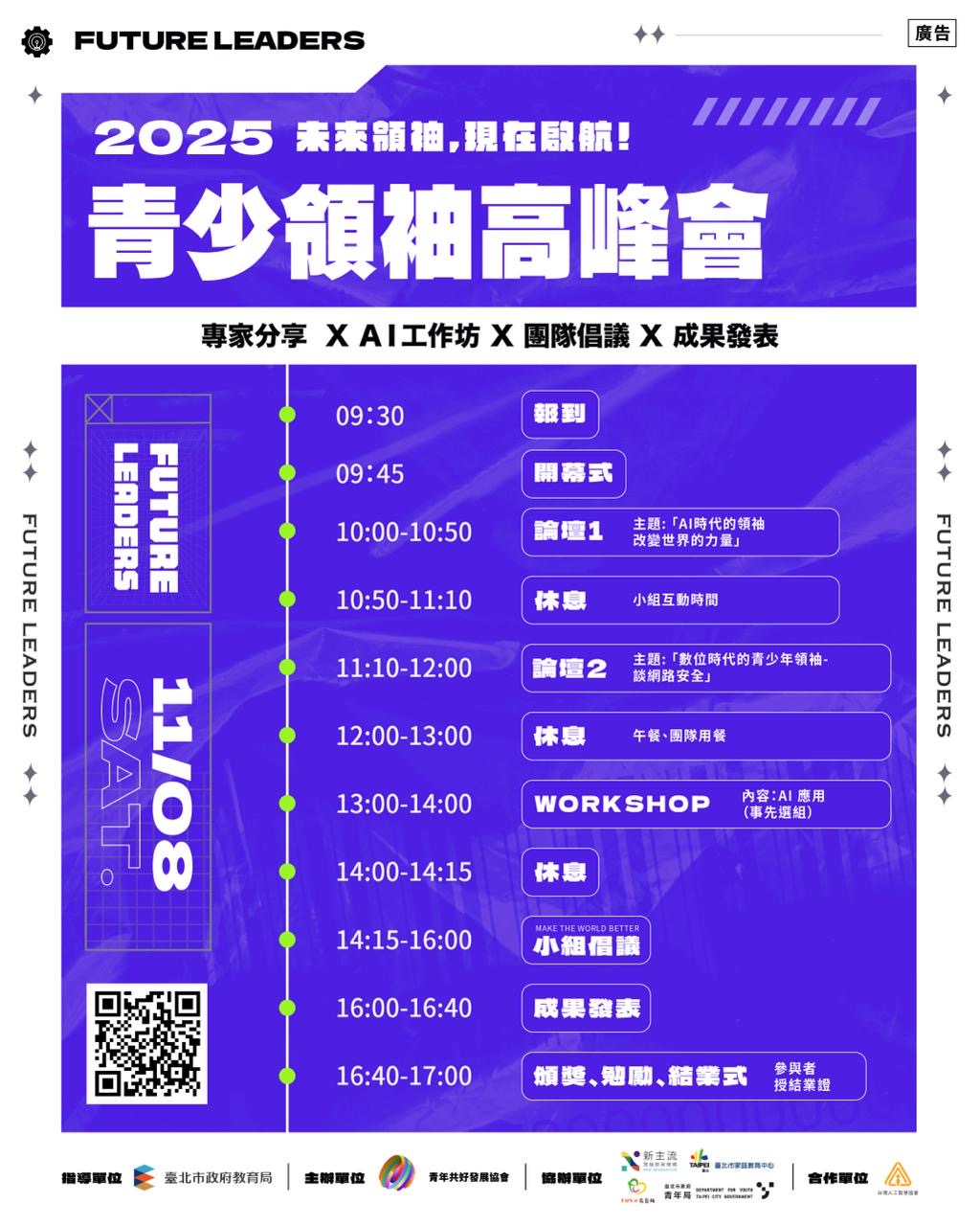 公告主旨 | 財團法人臺北市青年共好發展協會「2025少年領袖高峰會」 |