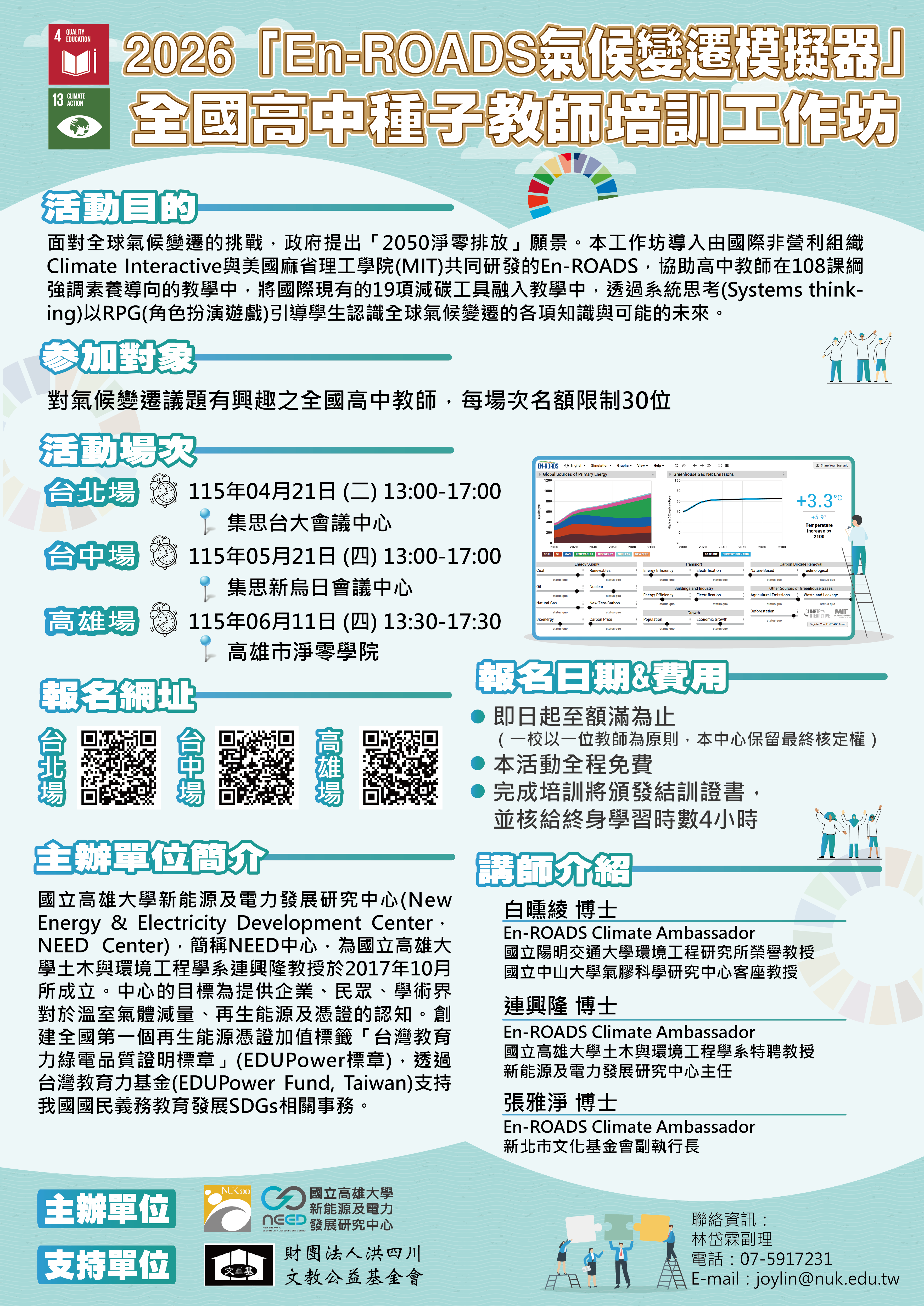| 公告主旨 | 2026「En-ROADS氣候變遷模擬器」全國高中種子教師培訓工作坊 |