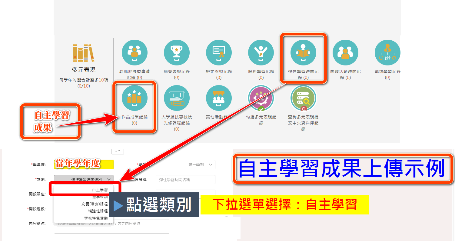 自主學習計劃書請上傳『多元表現』➔『彈性學習時間記錄』➔『自主學習』。