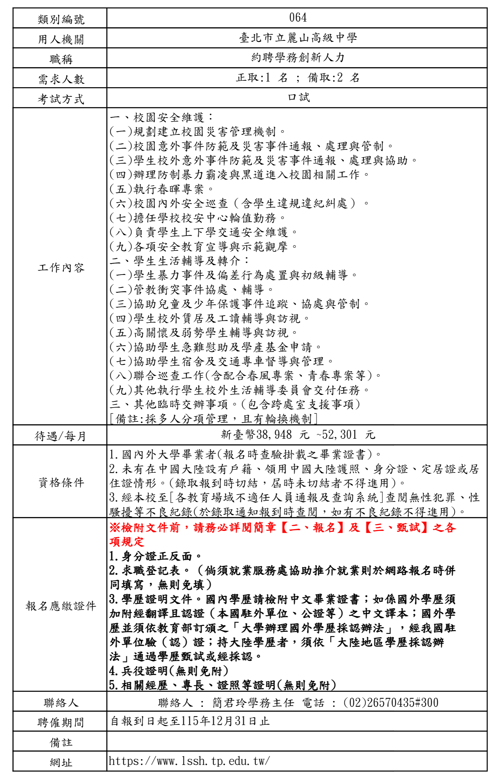 | 公告類別 | 最新消息, 麗山快訊, 重要消息 |