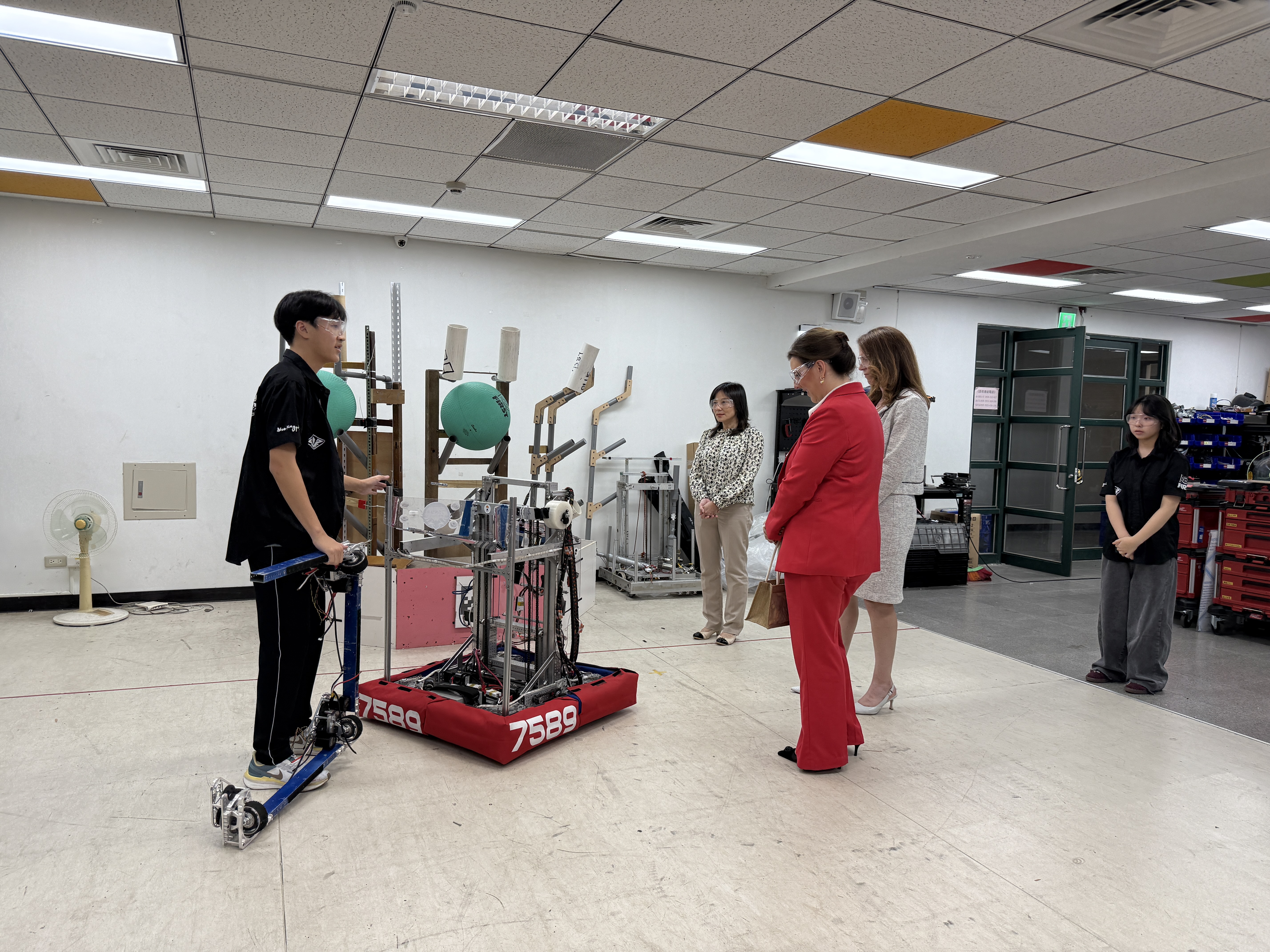 麗山高中陳汶靖校長率領行政與教學團隊熱情接待,安排學生以全英語導覽校園,介紹學校特色課程及社團活動。訪賓特別關注本校接待學生團隊—星嵐大使團的表現,讚許學生展現自信與流暢的英語溝通能力,充分體現雙語教育成果。訪賓亦參觀本校 FRC 機器人團隊,透過團隊簡報及體驗操作活動了解麗山高中如何結合STEM教育與國際競賽,培養學生跨域思維與團隊合作精神。 Weaver廳長表示,麗山高中學生展現的主動學習與創新精神令人印象深刻,並表示歡迎未來學校團隊有機會造訪南卡羅萊納州,持續深化雙方教育交流。